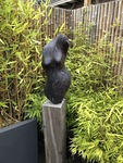 2019Vrouwen torso gehakt uit chinese hardsteen, staand op een hardhouten sokkel. Het beeld staat prachtig in de tuin of op terras. Te koop eventueel inclusief hardhouten sokkel.