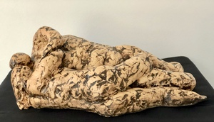2020Liggend stel waar de liefde vanaf spat. Keramiek bewerkt met engobe en afgewerkt net een hele dunne transparante laag.