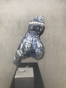 2022Blauwe rug, keramiek bekleed met Delfs blauw, op aluminium sokkel.